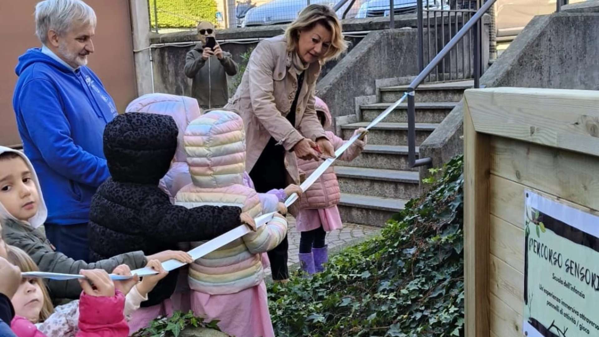 Uno dei momenti più toccanti è stato quando i nonni, mano nella mano con i bambini, hanno inaugurato i pannelli sensoriali uno per uno. Un gesto semplice, ma carico di significato: il sapere che si tramanda, l’affetto che si intreccia, l’esperienza che guida la scoperta.